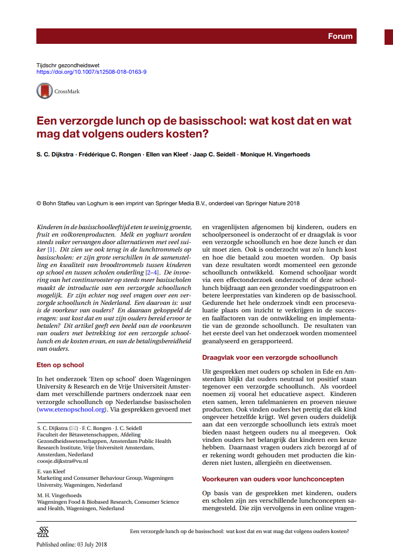 - Er lijkt onder ouders draagvlak te zijn voor het introduceren van een zelfsmeerlunch op de basisschool